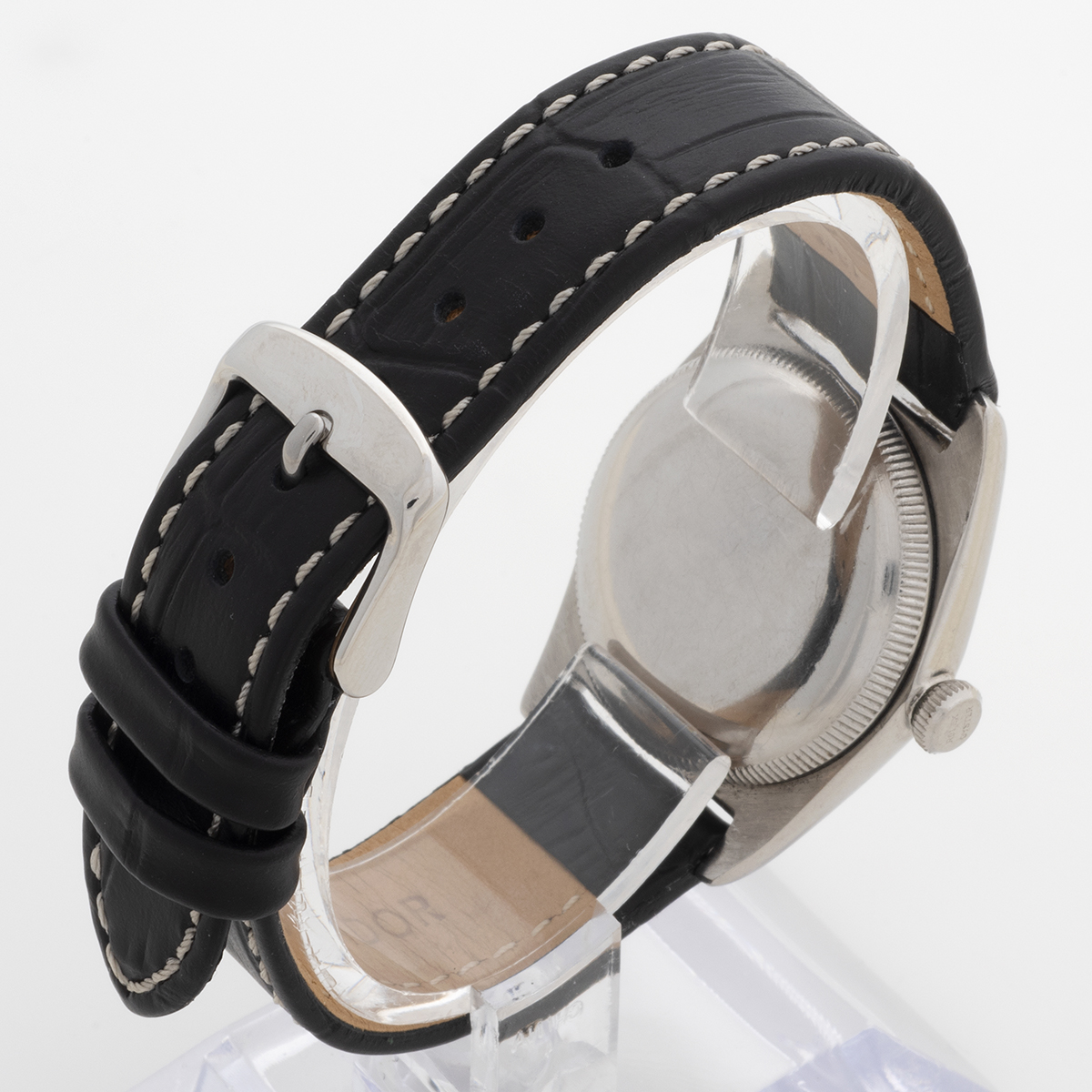 Our very attractive vintage Rolex Oyster perpetual chronometer, reference 2940, aka "bubbleback / ovetto" features a 32mm x 39mm stainless steel case with silver baton dial and sword hands. Presented in lovely condition for its age, this combination of dial and case makes for a svelte vintage look. We date production to c.1949 given the 69 **** serial number. A new quality leather strap is fitted with generic tang buckle. Neither box nor papers are present, a presentation pouch will be included. This would make an ideal daily wearer or addition to a collection; the Bubbleback makes for astonishing value contrasted to a more modern Rolex, offering understated and underrated looks.